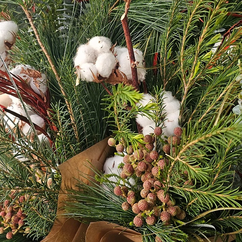 Vianočná kytica - jedlička, borovica, bavlnovník